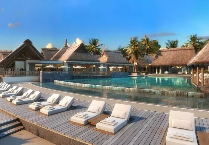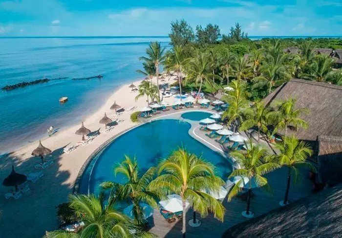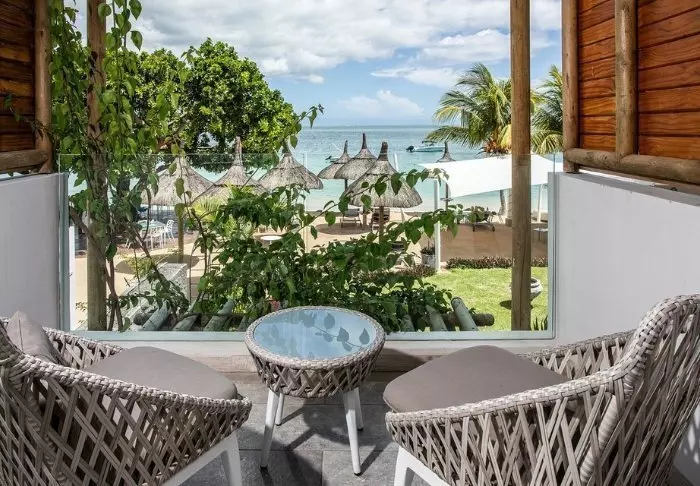 The hotel is located on one of Mauritius’s most beautiful beaches, Palmar Beach. Think chalk-white sand and turquoise sea.