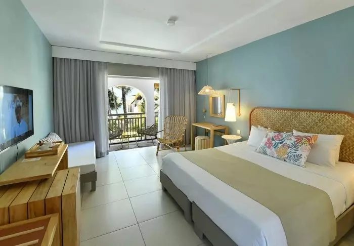 The ‘Prestige’ rooms in the southern ‘wing’ are colourfully decorated with lots of personality, while the slightly larger ‘Deluxe’ rooms in the northern wing are a little more subdued and slightly more luxurious. The all-inclusive concept includes a minibar in the room, which is replenished daily with beer, soft drinks and wine (if desired) in addition to all the day’s meals. Also on the food front, C Mauritius stands out (positively, if you ask us) in that, for example, at lunchtime you can pick up your food and a cold beer in the hotel’s self-service restaurant and take it to the beach or enjoy it on your balcony without having to change and wait for a waiter – unless of course you want to do that, because then it’s obviously an option!