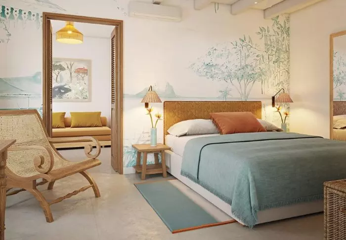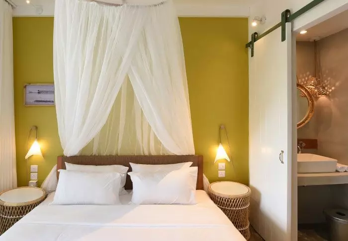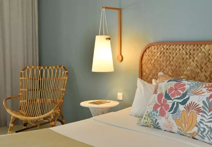 The hotel has 116 rooms, all of which have en suite bathrooms, air conditioning, tea/coffee-making facilities, minibars and free Wi-Fi. The rooms are very charming, with colours used to good effect so they are both inviting, modern and retro at the same time. All the rooms have a private balcony or terrace. Each room is also equipped with a ‘beach set’ comprising a basket with towels and beach mats, and even your own cooler bag.