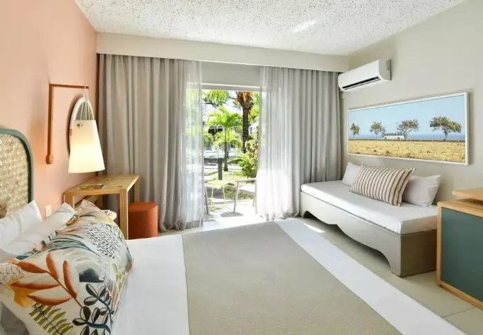 There are 261 rooms, all of which have a view of either the sea or the large tropical gardens surrounding the hotel. All the rooms have a private balcony or terrace. They also have air conditioning, a TV and a minibar.