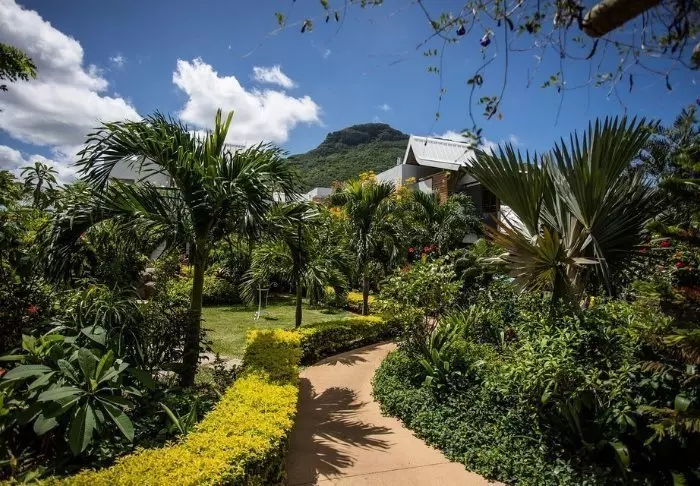 The rooms are in small bungalows, which are located behind the communal areas. Here, you can enjoy views of the lush gardens – and it is so quiet and peaceful that it’s hard to imagine that you’re only a few minutes’ walk from the centre of Grand Baie!