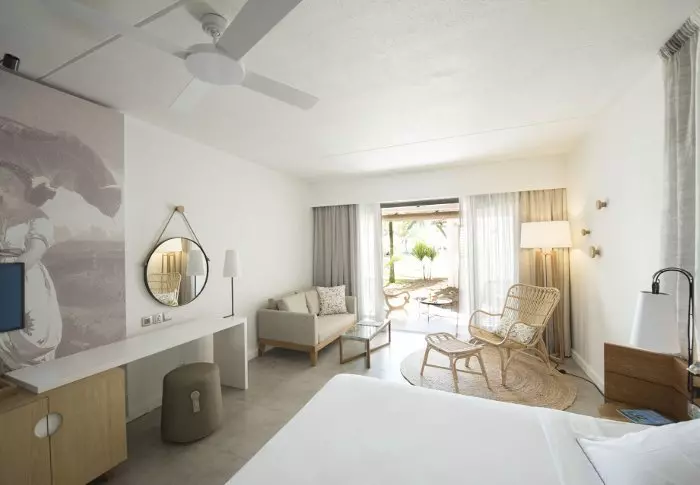 There are 115 rooms located in two-storey buildings in the tropical garden. All of them have a balcony/terrace, free Wi-Fi, air conditioning, a minibar, a safe, and tea and coffee making facilities. 44 of the rooms are special family rooms with space for all the family, and at one end of the hotel area, you will also find a well-equipped “Kids’ Club”.