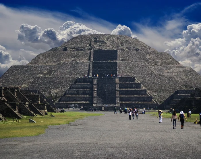 Next, the tour continues to one of Latin America's largest archaeological sites, the temple city of Teotihuacán, meaning 'The place where men become gods'. You'll walk along the 3 km long Avenida de los Muertos (Avenue of the Dead), where you'll see massive temples and pyramids, dating back as far as 200 BC, though built over an extended period. Notable highlights include the Temple of Quetzalcoatl, where more than 200 sacrificed war captives were discovered, as well as the Quetzalpapalotl Palace, the Moon Pyramid (60 m), and the Sun Pyramid (70 m), constructed in the city's centre atop a 100 m long cave, said to be where humanity was created.