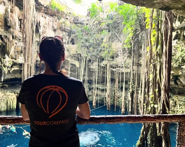 After visiting Chichén Itzá and having a short lunch break, the tour continues to the beautiful cenote San Lorenzo Oxman, where you’ll have the chance to enjoy a refreshing swim. A cenote is a natural, underground freshwater pool, unique to the Yucatán. The Oxman cenote is open to sunlight, highlighting its vibrant green waters. Luxuriant vegetation and tree roots cascade down its sides, giving it an enchanting quality. There are toilets and changing rooms available, and you can rent a locker for your valuables and a life jacket for a small fee.
