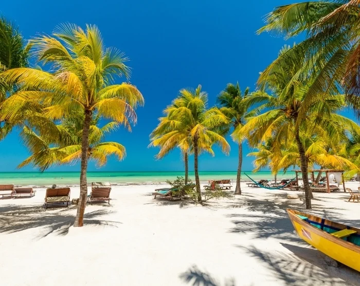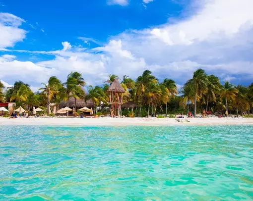 You’ll then continue to the beach town Playa del Carmen, with its miles of white sand beaches, swaying palm trees, and crystal-clear waters.