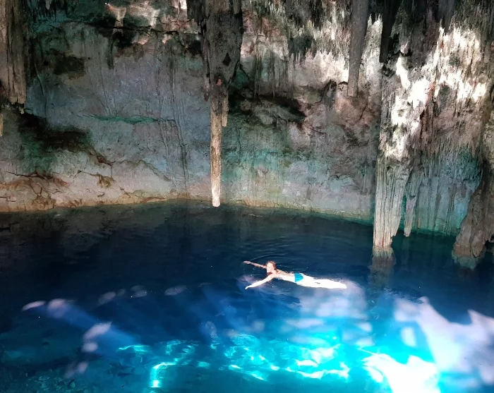 Soak up local life as you stroll the cobbled streets, and don’t miss a walk down the beautiful Calzada de los Frailes, where rows of brightly painted houses stand shoulder to shoulder. You can also visit the historic San Bernardino de Siena convent and the fascinating Zaci cenote, a natural underground pool right in the city itself—perfect for a refreshing swim at midday. In fact, there are more than 6,000 cenotes dotted across the Yucatán Peninsula. Read more about cenotes on our blog here.