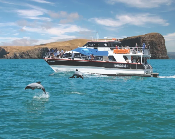 After lunch, you’ll embark on a two-hour nature cruise from Akaroa Harbour. Here, you will have the opportunity to spot Hector’s dolphins – the world’s smallest and rarest dolphin species – as well as seals and penguins in their natural habitat.