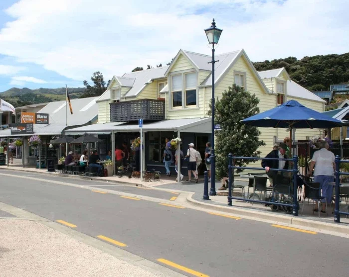 Akaroa is located on Banks Peninsula and is known for its French heritage, picturesque surroundings, and rich marine life. The town is the only place in New Zealand where French settlers established a colony, reflected in the town’s architecture and atmosphere.