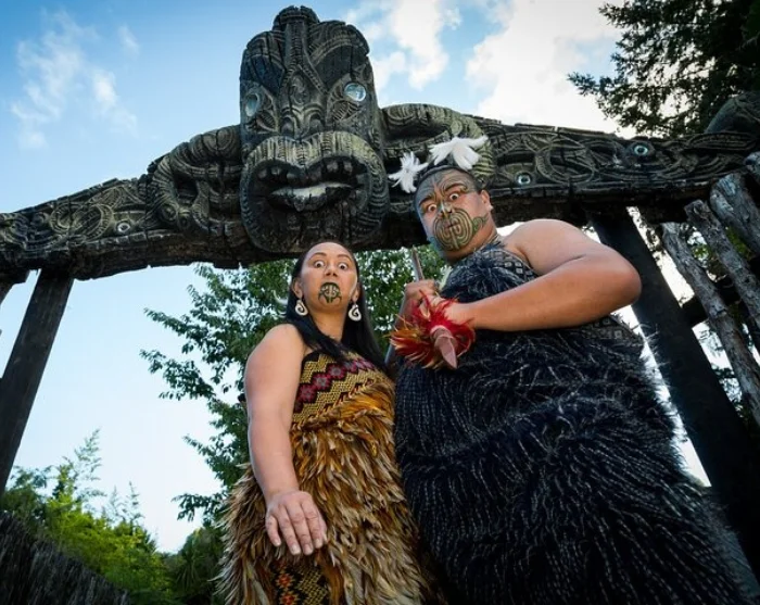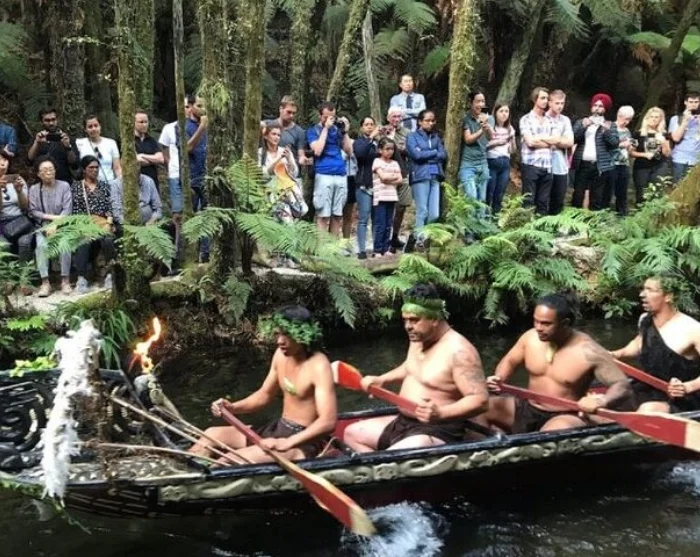 Highlights include witnessing Māori warriors paddle down the Wai-o-Whiro river in a traditional waka (war canoe).