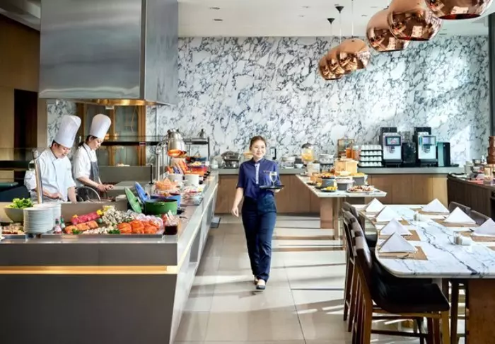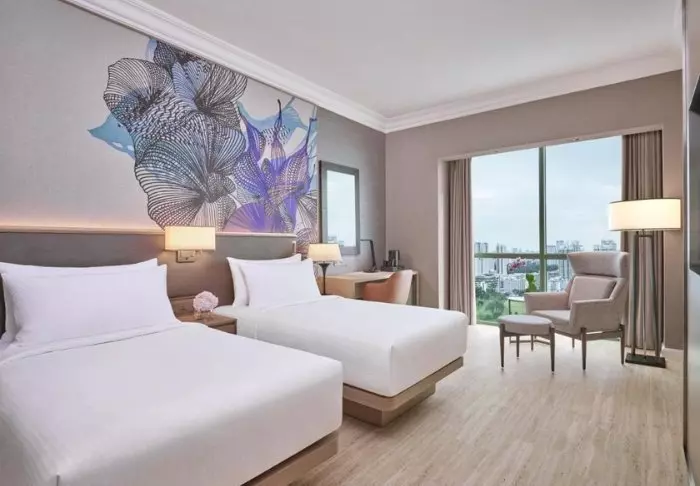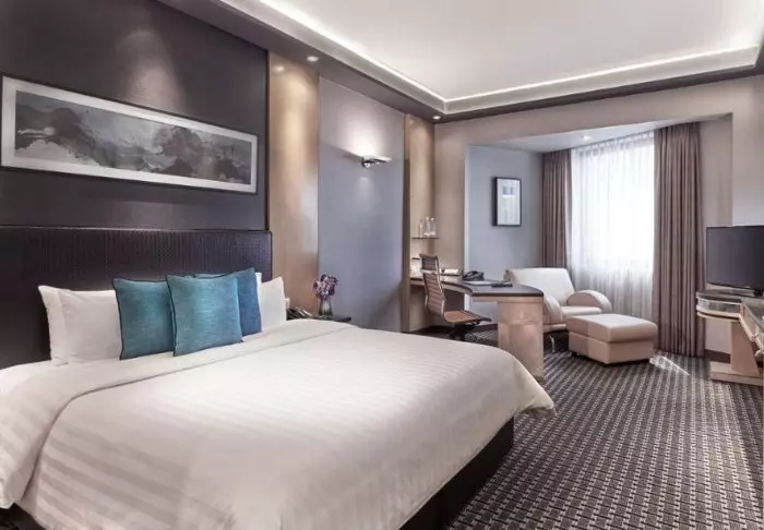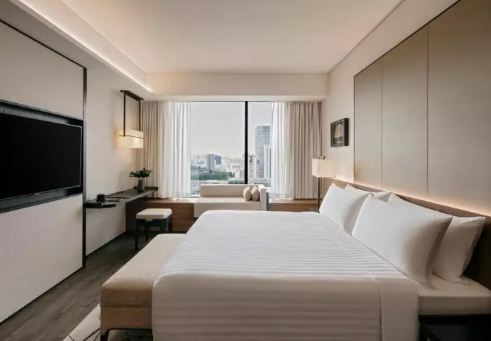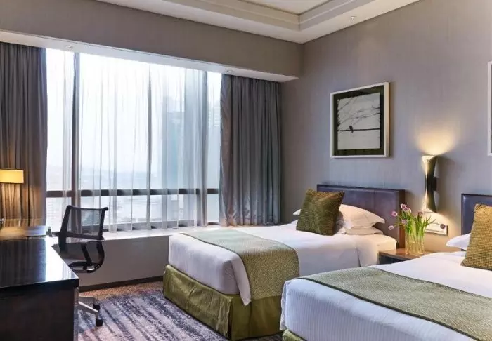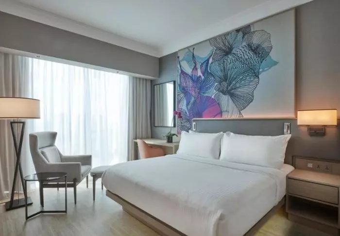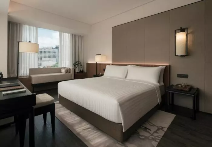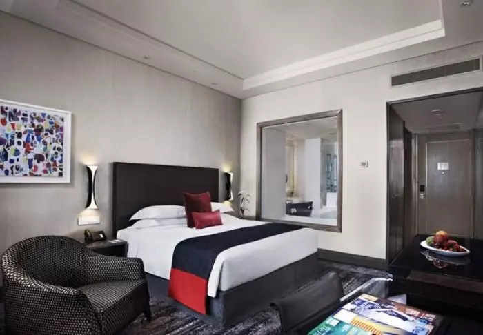 Elegance and comfort combine the hotel’s atmosphere, as well as in its 386 rooms. All rooms feature stylish and comfortable interiors, giving you the opportunity to enjoy Singapore’s impressive skyline. Each room is at least 32 m2, and they all feature every amenity you need for a comfortable stay, e.g., Wi-Fi, air conditioning, a safe, mini-bar, coffee, and tea facilities, as well as an iron and ironing board. The bathrooms are similarly spacious, featuring a shower or bathtub as well as toiletries and a hair dryer.