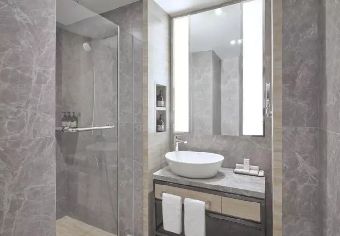 The rooms are modern, decorated in light, natural tones, all have air conditioning, Wi-Fi, a TV, a safe, an iron and ironing board, a minibar, an electric kettle and complimentary tea and coffee. The bathrooms offer a rain shower, toiletries and a hair dryer.