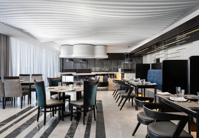 The hotel features 127 stylish and elegantly designed rooms, all focused on comfort with a modern touch. Each room is well-equipped, offering amenities such as a TV, a safety box, tea and coffee facilities, air conditioning, a balcony, Wi-Fi, and a minibar.