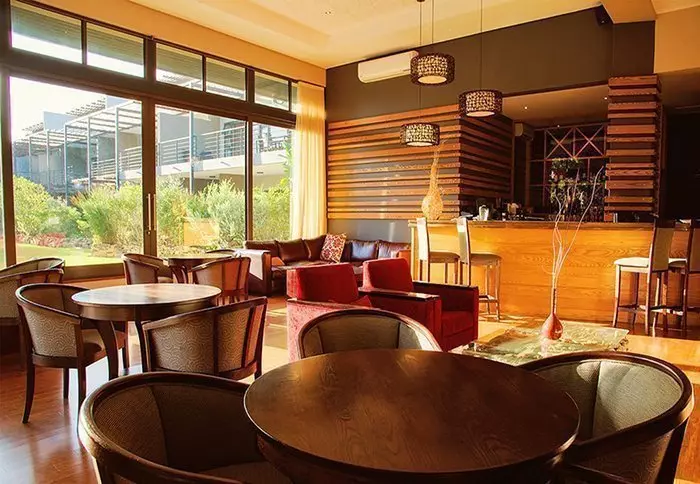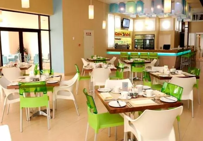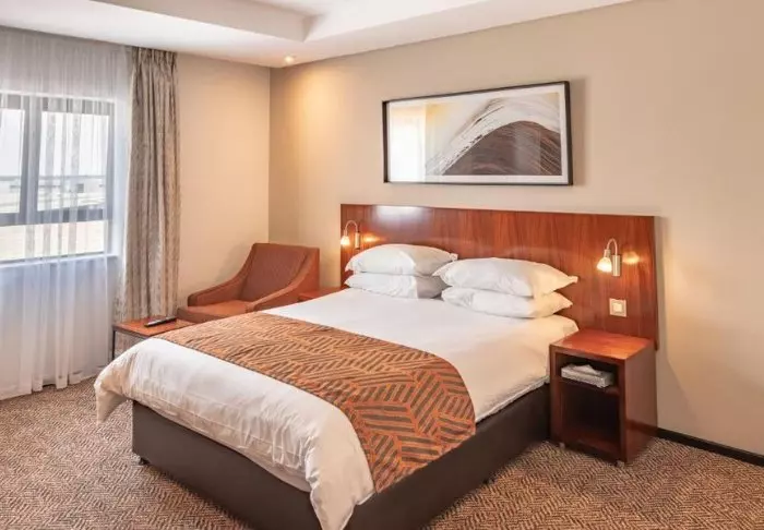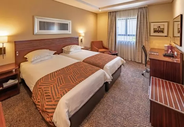 The hotel has 150 rooms spread over three floors. It is decorated in a modern style with warm colours with a touch of Africa. The rooms have air conditioning, a flat-screen TV, a safe, coffee and tea facilities as well as a bathroom with toiletries and a hair dryer.