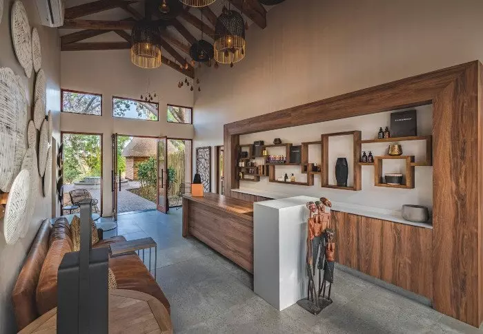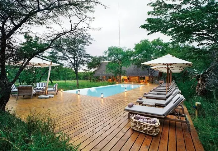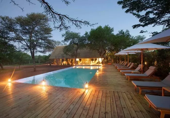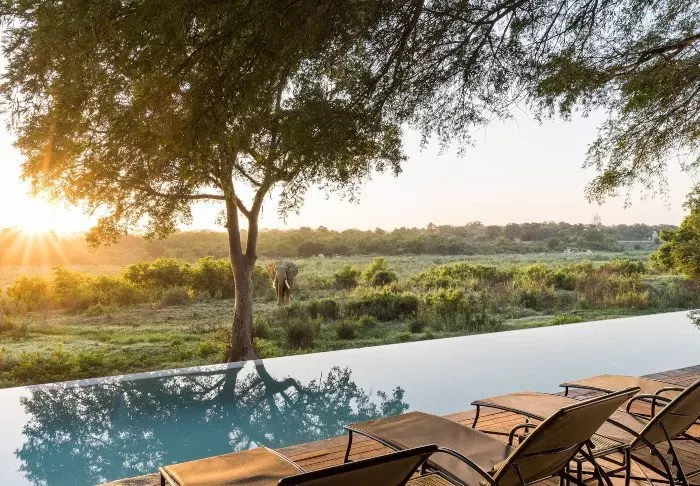 Located by one of the pools, the cosy lounge area offers a view of the Kruger National Park on the other side of the Sabie River. In the very early morning and at the end of the day, the light here is incredible, and if you’re lucky, perhaps a pride of elephants will come by to bathe in the river.