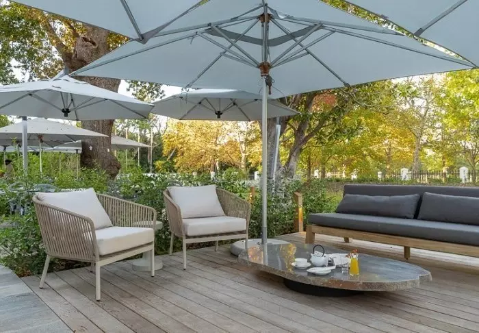 The entire hotel is stylishly appointed in soft tones in keeping with the surrounding nature and contributing to the peaceful, oasis-like environment. There are 44 spacious, modern rooms equipped with tea/coffee making facilities in the form of Nespresso machines, air conditioning, satellite TV, a safe, a mini fridge, a hair dryer, L’Occitane toiletries and USB sockets. All rooms have a cosy private terrace or balcony overlooking the garden and one of the two swimming pools.