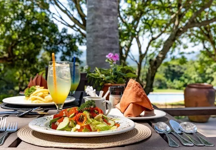 The rooms are spacious and inviting, and each one features a view of the garden and its bird and animal life. They are fully equipped with air conditioning, hair dryers, safes, international power outlets, and TV.