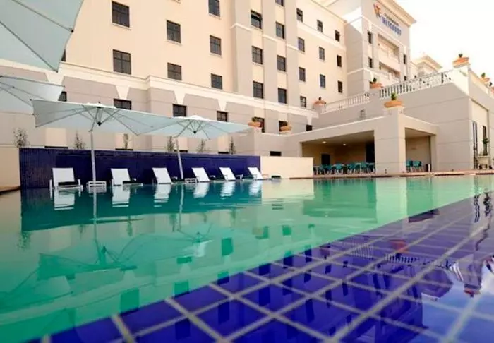 The 3-star hotel Peermont Metcourt is just a 5-minute drive from Johannesburg airport. The hotel is connected with one of South Africa’s major casino complexes, Emperor’s Palace. The hotel has 80 modern and well-equipped rooms. All rooms feature air conditioning, flat-screen TVs, safes, coffee and tea facilities as well as bathrooms with toiletries and hair dryers.
