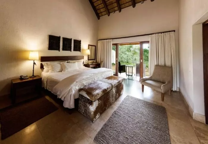 There are just 15 suites and 10 villas here, all of which are luxuriously and stylishly appointed in muted natural colours, so that the décor does not detract from or disturb the nature that is right outside the large windows. All suites have their own terrace, from which you can enjoy the view of the bush. Naturally, there is also air conditioning, a minibar and tea and coffee making facilities.