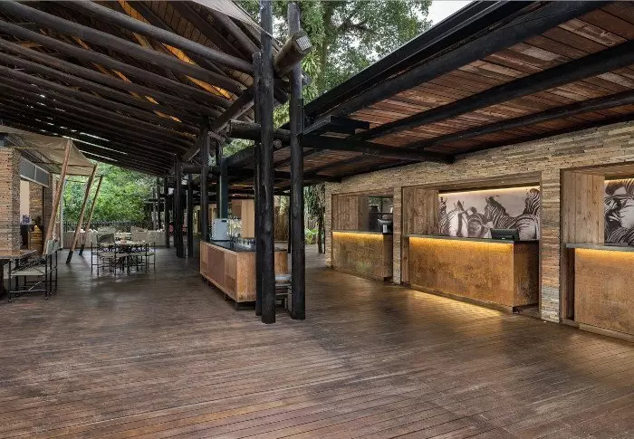 The camp offers a wonderful restaurant, a lively bar, an excellent little shop, as well as multiple “bomas”, typical South African fire pits where food is served under open skies.