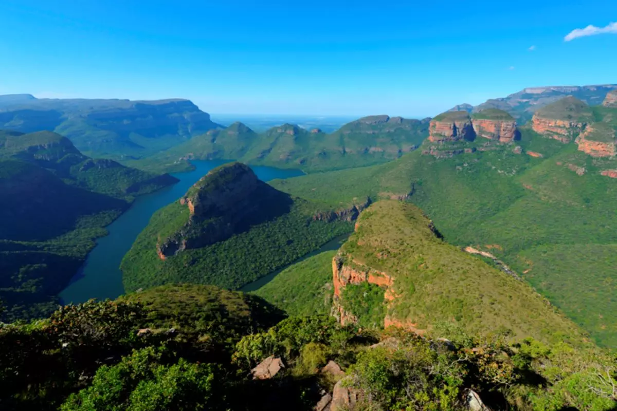 Today is given over to a beautifully scenic full-day trip along the Panorama Route through the dramatic Drakensberg Mountains. The mountains themselves are red, and form a magnificent contrast to the green trees and plants. On the trip, you will experience the breath-taking Blyde River Canyon. Measuring 700 m deep and 60 km long, it is the third-largest canyon in the world. You will stop at the three best vantage points along the canyon: God’s Window, Bourke’s Luck Potholes and The Three Rondavels – three beautiful and remarkable rock formations whose shape calls to mind the round huts previously to be found in local villages in many parts of southern Africa. The Panorama Route will also take you past a number of waterfalls, and you will have the chance to stop to admire one of them. This could, for example, be the Berlin Falls, where the water cascades down into a lake from a height of 150 metres. Or you may stop at the Lisbon Falls, located where the Blyde river splits in two and then drops 92 metres down an almost vertical cliff, before coming together to form a single river once more. There are many other waterfalls, however, and your guide will decide where you stop. One of the most spectacular sights you will see during the day is sure to be the Bourke’s Luck Potholes – cylindrical holes carved into the rocks by the action of water and sand over thousands of years. You can see this amazing natural phenomenon right up close from bridges built over the peculiar holes.