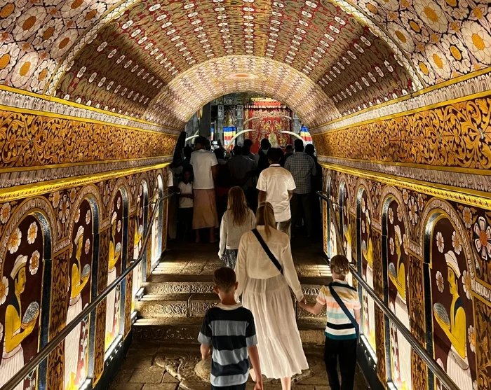 The tour then continues on to Kandy. If you fancy, you can visit the Girigama Tea Factory, one of the area’s best-known tea producers. Here, you’ll gain an intriguing insight into the journey from freshly picked tea leaves on the mountain slopes to steaming hot cups of tea. Children are sure to be fascinated by the old machines whirring into action as the scent of fresh tea fills the air. You’ll also have the chance to sample a range of different blends and pick up some of their famous Ceylon tea as a delicious souvenir to take home.