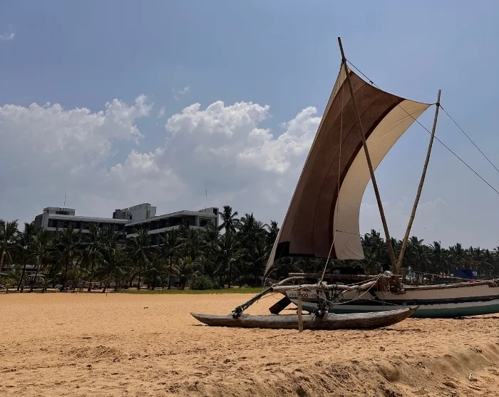 You’ll then be driven to Negombo, a vibrant beach town just a half-hour’s drive from the airport. Here, you’ll find a wide, golden sandy beach where the palm trees sway gently in the breeze and fishing boats drift lazily towards the shore.