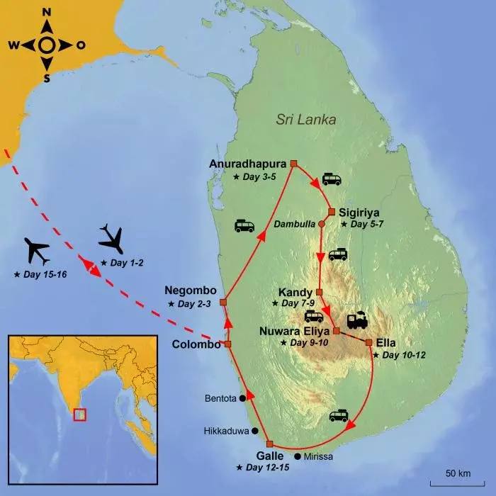 Your day will begin right on the golden sands of Negombo’s beach, before heading northeast to Sri Lanka’s cultural triangle, where you’ll have the chance to immerse yourself in the country’s rich history and cultural heritage.