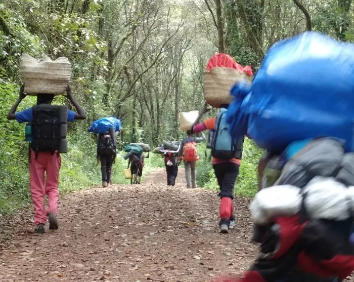Through Tanzanian legislation, porters on Kilimanjaro are assured a minimum wage, and MKPS membership ensures that the individual porters receive more than the minimum wage. Through MKPS, all porters also receive three meals daily, proper clothing for the mountain (jackets, boots, gloves, etc.), tents, sleeping bags, mattress, etc. In addition, rules have been put in place as to how much each porter may actually carry, and all porters have health insurance. They are also given a course in first aid, English courses and guidance on setting up a bank account, etc. The porters at MKPS, in turn, undertake to help pick up rubbish on the route to the top of Kilimanjaro twice a year. MKPS is 100% Tanzanian.