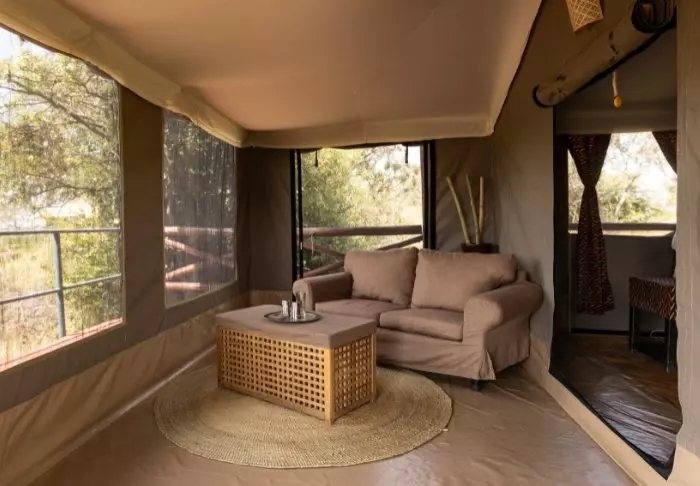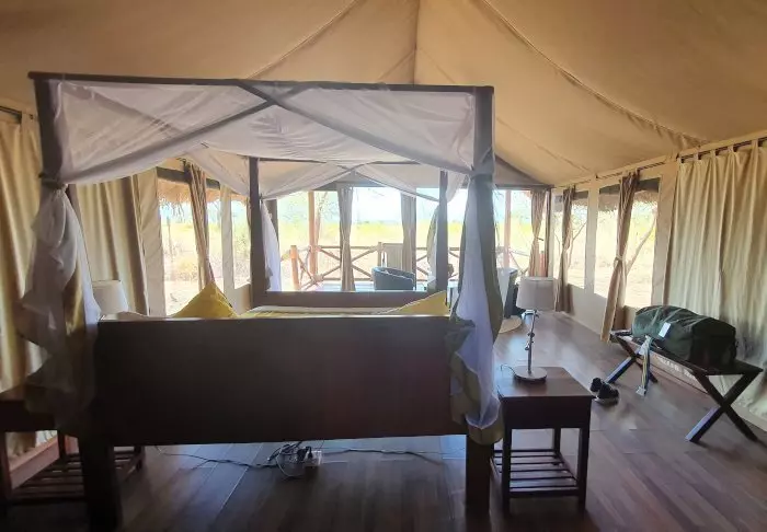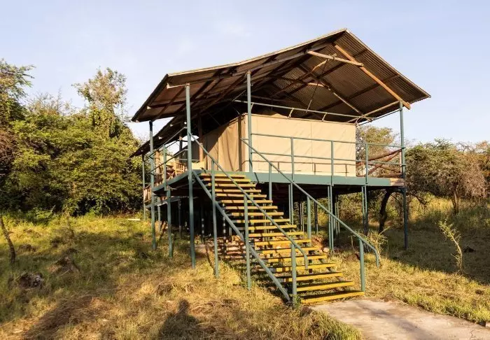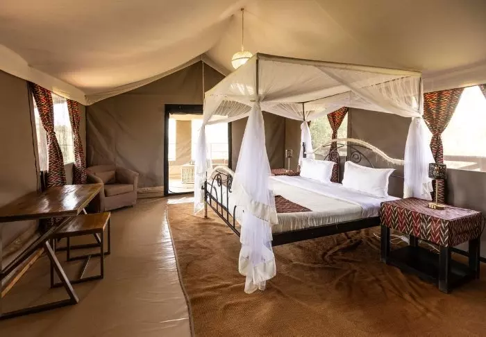The camp is a classic African safari camp with rustic, comfortable canvas tents. The nature and wildlife are right on your doorstep. It is not uncommon for wild animals to pass through the camp at night, and you can expect to see gazelles, antelopes, zebras, and occasionally elephants and hyenas, around the camp.