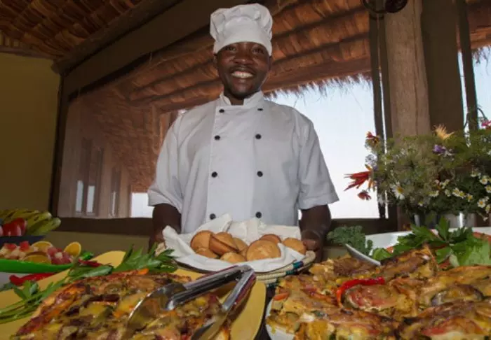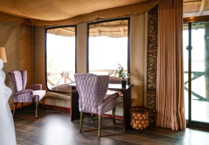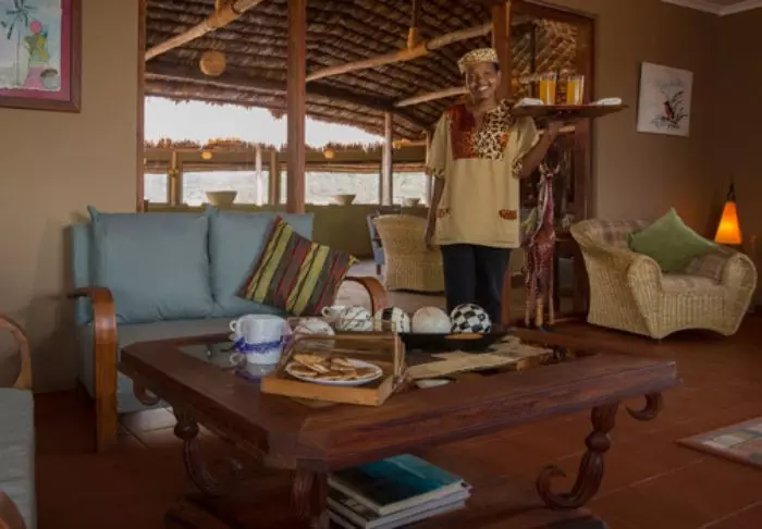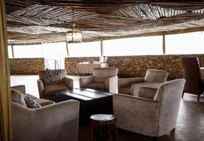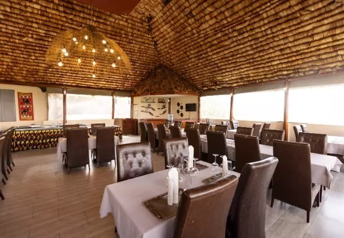 The restaurant affords a scenic view of the area, which is on the migration route. The area is also home to large herds of different antelope species, buffaloes and elephants as well as flocks of flamingos and other birds.