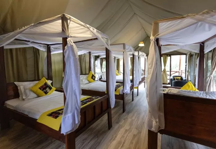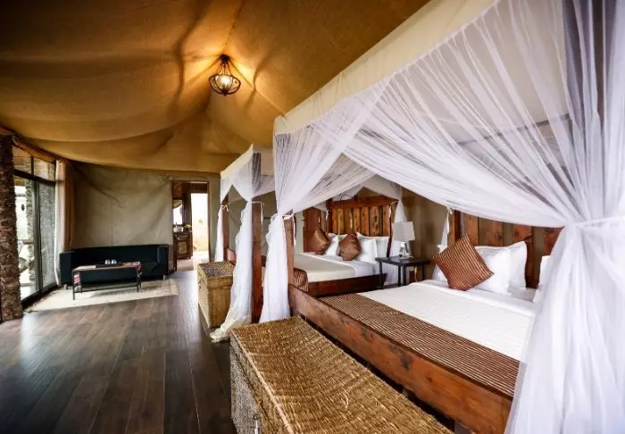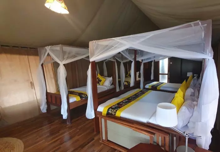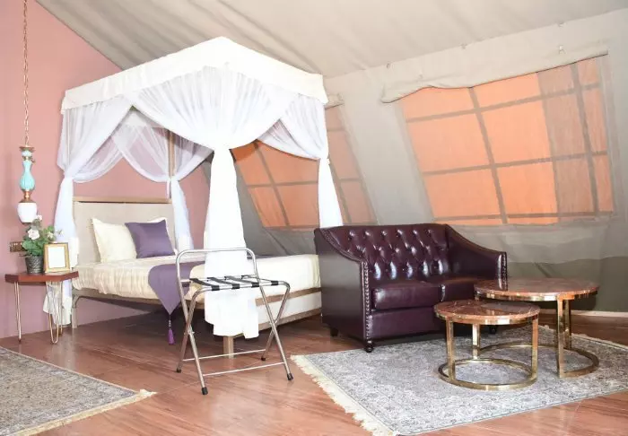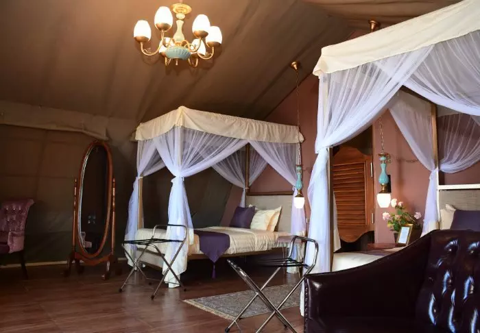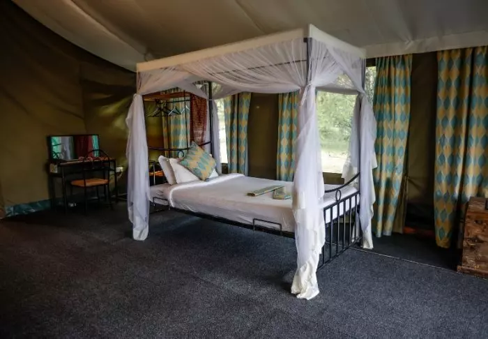 All of the tents are nicely furnished with four-poster beds with mosquito nets, desks, sofas, chandeliers and, all in all, offer really good space.