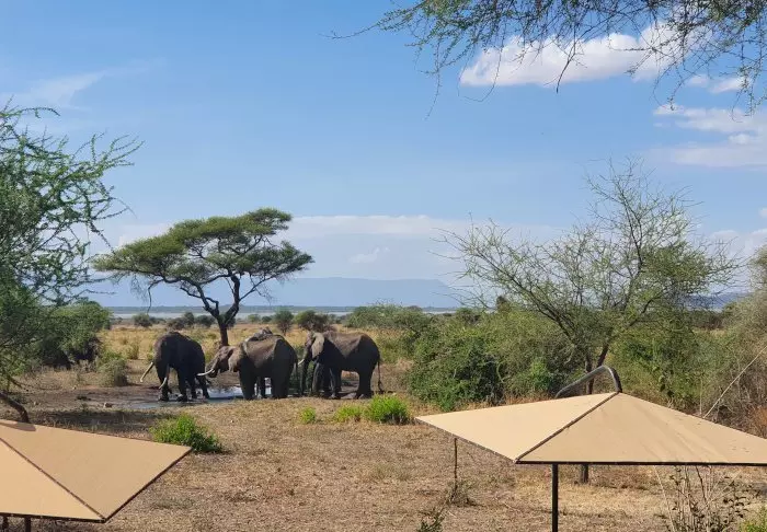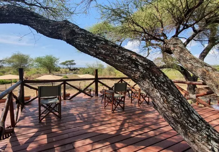 The views from the raised deck at Tarangire Simba Lodge are phenomenal. You almost don’t need to go on an actual safari. The permanent water hole attracts animals throughout the day – right in front of you, sitting there in your first-row seat.