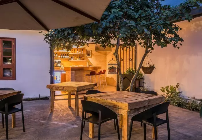 In the evening, a bonfire is often lit in the garden, where you can share your travel experiences with the other guests over a drink before dinner.