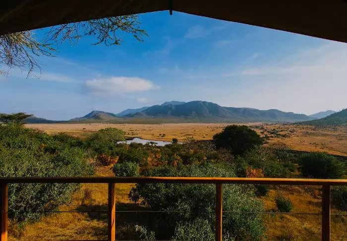 Mkomazi Wilderness Retreat is located on a hilltop with the most wonderful views of Mkomazi National Park’s only permanent waterhole.