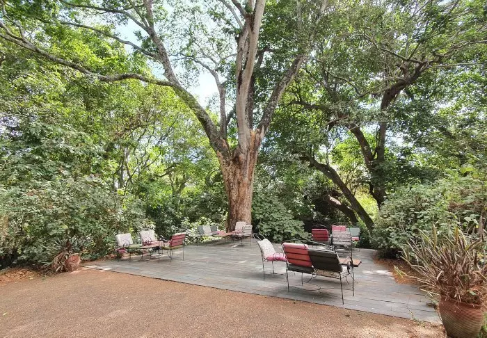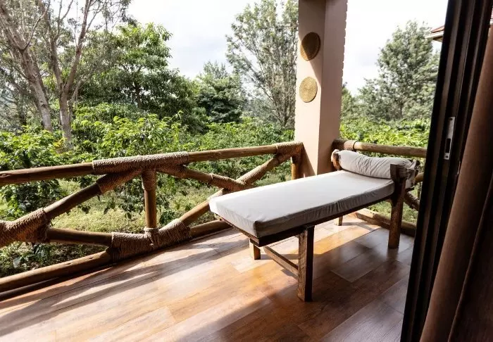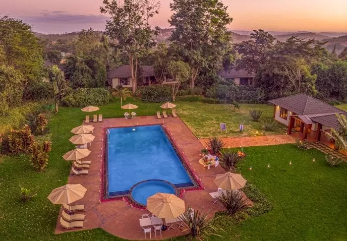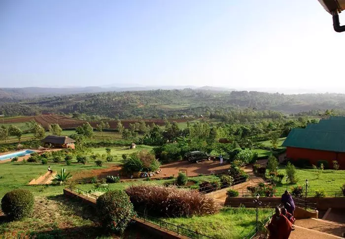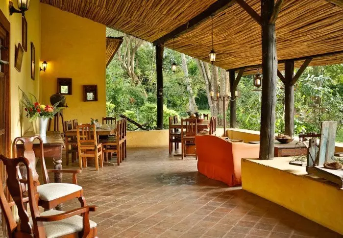 It has 41 rooms and a veranda overlooking a lush valley with coffee plantations, which the elephants love to ravage. The hotel also has its own coffee plantation, and the coffee can be enjoyed at the hotel and purchased to take home with you. An organic fruit and vegetable garden are also part of the hotel.