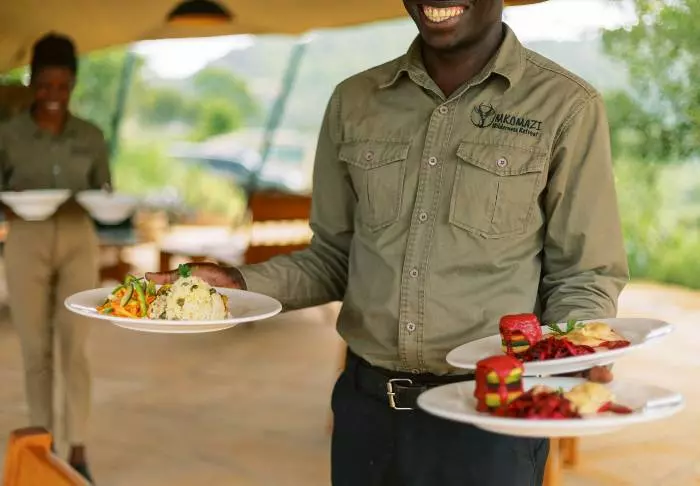 Food and beverages are given pride of place here. Everything is local and organic, in as far as at all possible. There is generally great focus on sustainability in the camp. All materials are from Tanzania, and the camp is 100% solar cell driven.