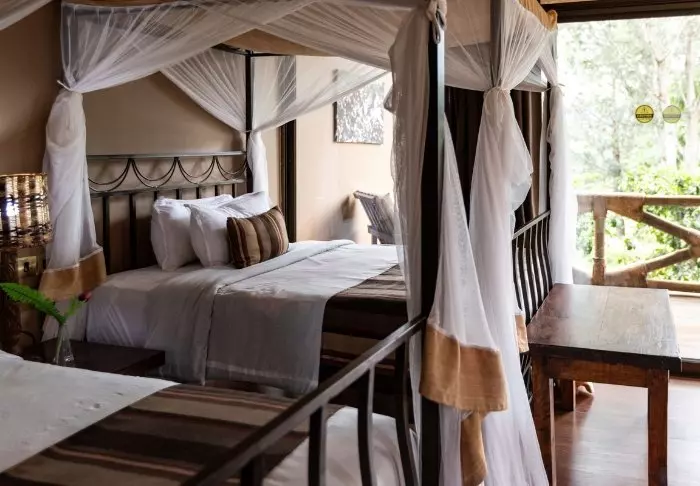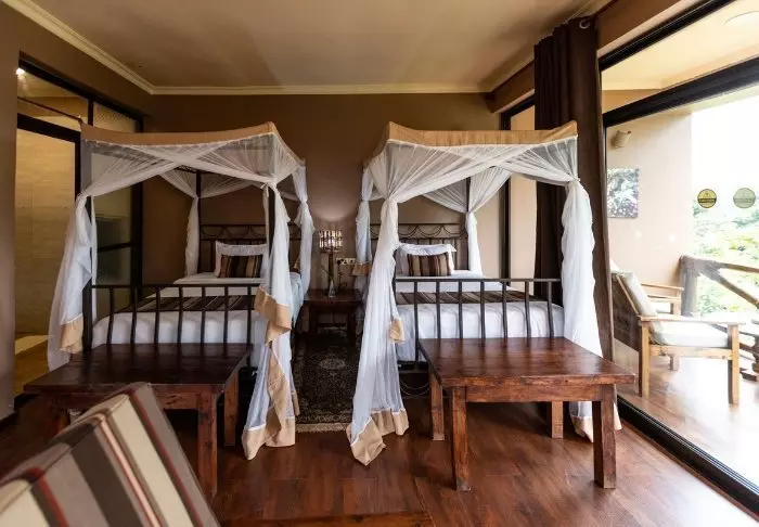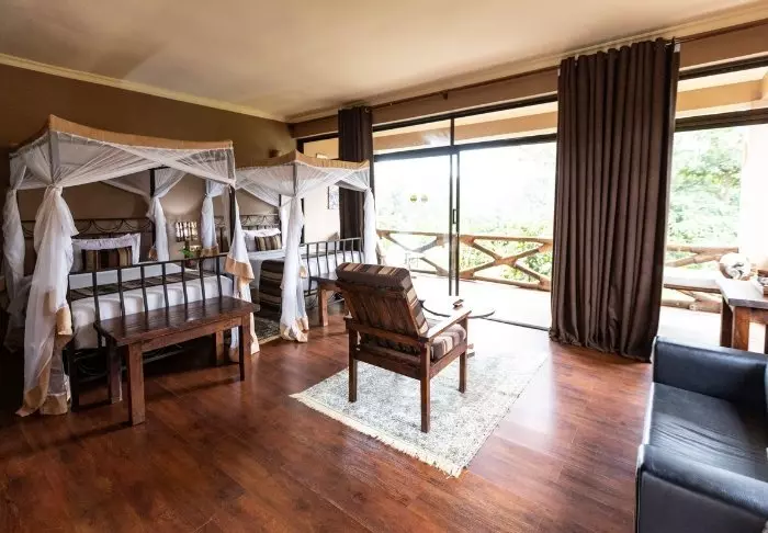 Situated on a peaceful hilltop, close to the bustling centre of Karatu is the charming, Acacia Farm Lodge. As the name suggests, it is a working coffee farm with 32 rooms spread between 16 “cabins”. All rooms have their own large veranda or terrace, and all have air conditioning, a minibar, tea and coffee-making facilities, a TV, a safe and Wi-Fi. The rooms are large in size, modernly appointed with a touch of romance and have large windows which allow the light to flood in.