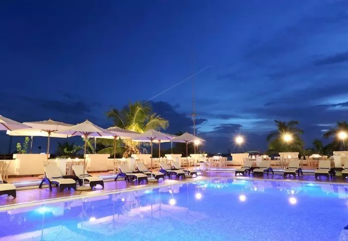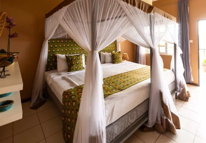 The hotel provides high standards of service with a modern swimming pool, beautiful gardens bars indoors and outdoors and spacious rooms with showers and mosquito nets.