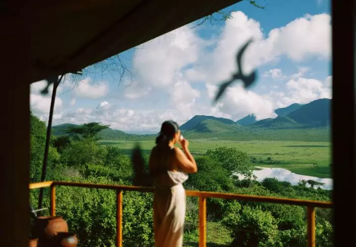 Perched on the top of a hill is Tloma Lodge, with its fantastic view of the nature around the Ngorongoro crater.