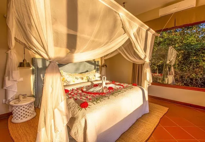 In the fields outside the fence of the lodge, you might be lucky enough to see hyenas, buffaloes and elephants. The drive here takes you along small roads through local villages, underscoring the feeling of calm, peace and nature.