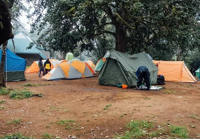During the hiking trip to the summit of Kilimanjaro you sleep in a tent in different camps.