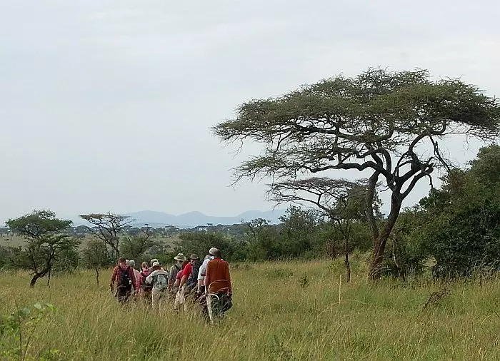 A walking safari is a hike in the bush around Ikoma Wild Camp. The tour lasts around an hour and takes place while it’s light. You are out walking in the wild and so are accompanied by both a guide and an armed security guard. Along the way you may encounter gazelles, antelopes, zebras, gnus, giraffes, elephants, hyenas, buffaloes – and perhaps even lions! It is a wonderful experience walking around in the wild, where you’re not master of anything!
