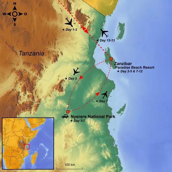 Before you get that far, however, you start the tour by shaking off your everyday life with a few days’ stay in sunny Zanzibar.