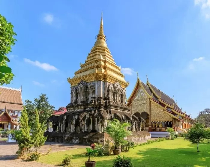 You’ll bike through the quiet, narrow streets of Chiang Mai to the lovely Wat Inthakhin Sadue Mueang temple, famous for its 700-year-old white Buddha statue. The bike tour continues past the Three Kings Monument to the Tha Phae Gate, where traders once brought their goods during the city’s heyday. Here, your guide will enlighten you about Chiang Mai’s former role as a trading centre. You’ll then head to the nearby Somphet Market, where you can take in the local vibe and sample colourful fruits and sweet treats. Afterwards, you’ll visit Chiang Mai’s oldest temple, Wat Chiang Man, home to an 1,800-year-old crystal Buddha and a 2,500-year-old marble Buddha. Finally, you’ll visit the city’s largest monument, the iconic Wat Chedi Luang, once the home of the Emerald Buddha, now housed in Wat Phra Kaew temple in Bangkok.