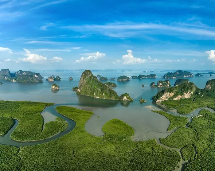 Today is spent at the beautiful Phang Nga Bay, located between Phuket and the Thai mainland. This is one of the most beautiful bays in all of Thailand. Limestone karsts rise vertically from the clear, blue-green water – in some places completely bare, in others overgrown with bushes and trees, which are home to both monkeys, lizards and lots of birds.