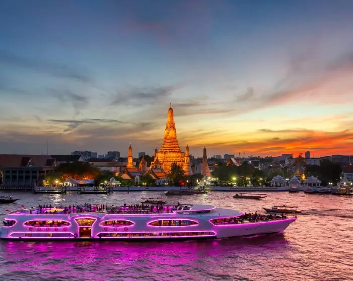 Come on one of the popular evening cruises on the Chao Praya River, which includes an aperitif, dinner, and entertainment.