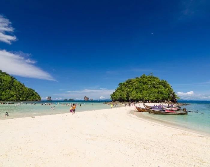 Next, you’ll visit the paradise islands of Koh Tup and Koh Mor, where you’ll find crystal-clear waters, white sand, and excellent snorkelling opportunities. The islands are linked by a sandbar that becomes visible at low tide. You can even swim from one island to the other, as they are very close together.