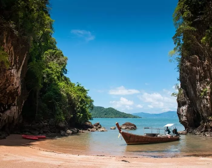 You’ll continue by long-tail boat to visit the islands of Koh Aung and Koh Talabeng with their iconic limestone karsts and picturesque bays. At Koh Talabeng, an unforgettable kayaking trip around the island awaits you, where you’ll experience its untouched nature, magnificent limestone karsts and fascinating caves.