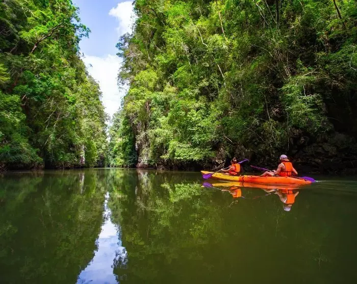 Once at Ao Thalane, you’ll be kitted out with a kayak and a life jacket, and after a short briefing, you’re ready to head out on the emerald waters and explore the area’s unspoiled beauty.