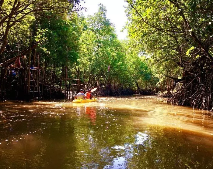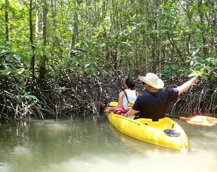 It’s nothing less than fantastic to paddle gently along the narrow canals in the shade of the mangrove trees. Listen to the sounds of nature and enjoy the view of the abundant wildlife. The mangrove forest is a breeding ground for birds, fish, prawns, crayfish, shellfish, snails and Atlantic mudskippers. It’s also highly likely that you’ll meet the forest’s macaques, which thrive in the mangrove forest.